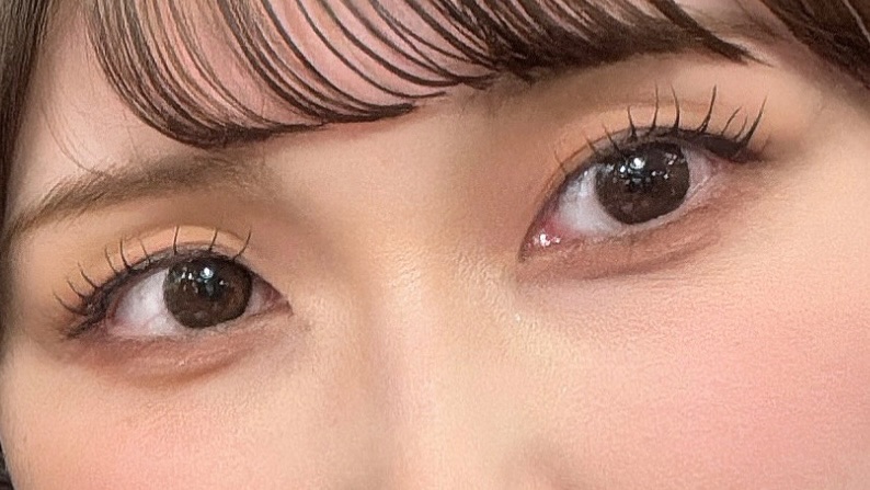 決して裸眼には見えないしカラコン感あるけど、奥目でも光が入るし、自分は茶目なんで黒目になりたい身としてはサイズ感からフチ感から全て好み!!顔面盛れます!ただ、付けたては少し乾燥を感じるかもしれない?装着液とかつければいいのかな?マンスリー購入しました!